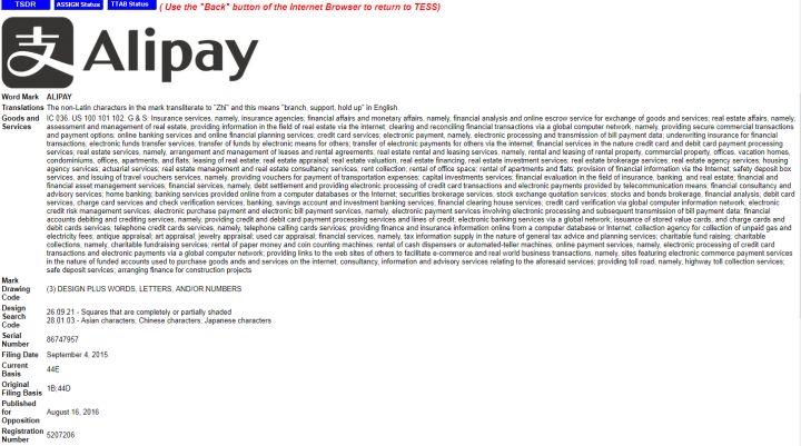 4.例如查詢:支付寶ALIPAY,在美國(guó)的注冊(cè)情況;