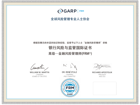 FRR中文證書是“國際銀行業(yè)風險與監(jiān)管證書”項目的中級證書,相當于ICBR中文證書。