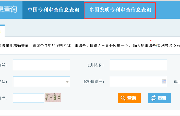 15、點(diǎn)擊繼續(xù)后進(jìn)入專利查詢系統(tǒng),在上方點(diǎn)擊多國(guó)發(fā)明專利審查信息查詢: