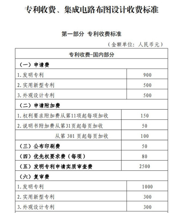 詳細(xì)的繳費(fèi)項(xiàng)目及金額請(qǐng)參見《國(guó)家知識(shí)產(chǎn)權(quán)局收費(fèi)公示》。