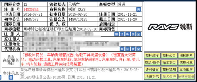 4、銳斯商標(biāo)于14年申請(qǐng),15年注冊(cè)成功,后因版權(quán)問(wèn)題,被他人提出無(wú)效宣告申請(qǐng),因爭(zhēng)議商標(biāo)的注冊(cè)已經(jīng)損害了他人享有的在先著作權(quán),已構(gòu)成《商標(biāo)法》第三十二條規(guī)定“不得損害他人現(xiàn)有的在先權(quán)利”之情形。終被無(wú)效。