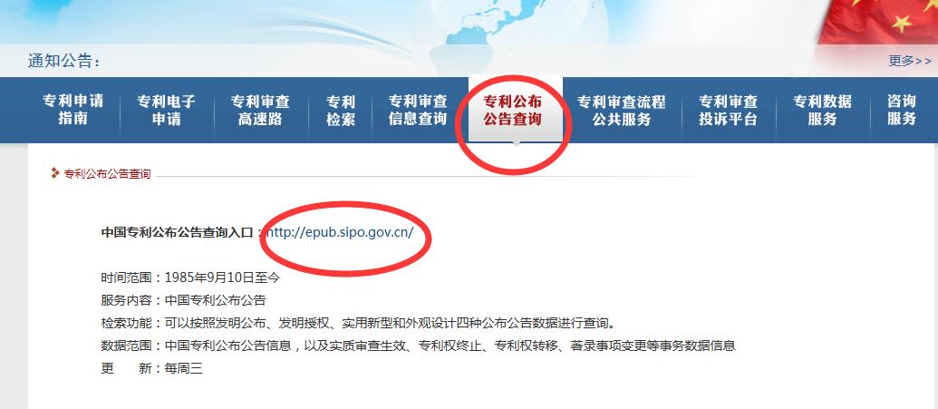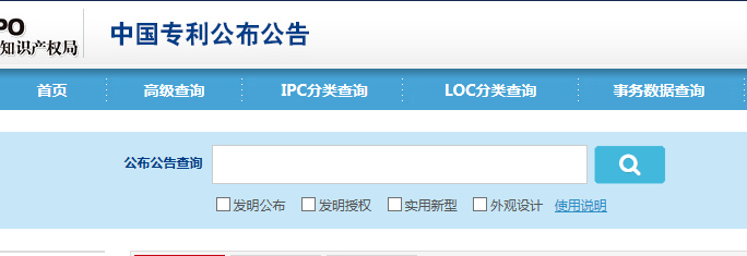 2、進(jìn)入跳轉(zhuǎn)頁面,點(diǎn)擊欄目“專利公布公告查詢”出現(xiàn)網(wǎng)址,點(diǎn)擊進(jìn)入。