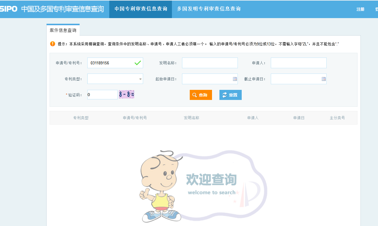 第四步,在“申請?zhí)?專利號”欄中,輸入專利號碼,點擊“查詢”。