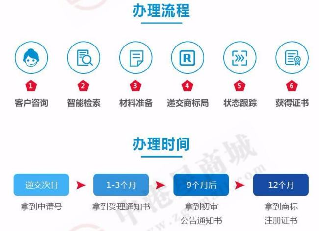馬德里標(biāo):18個月左右;歐盟商標(biāo):6個月左右;法國商標(biāo):6個月左右;德國商標(biāo):6個月左右;英國商標(biāo):5-8個月;美國商標(biāo):10-18個月;韓國商標(biāo):15-18個月;日本商標(biāo):10-15個月;