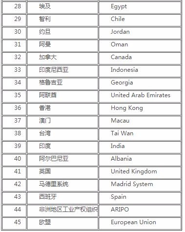 可提供國(guó)際商標(biāo)免費(fèi)檢索的國(guó)家名單如下: