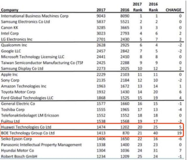 美國專利榜發(fā)布,2017年公司專利數(shù)量已經(jīng)出來啦!