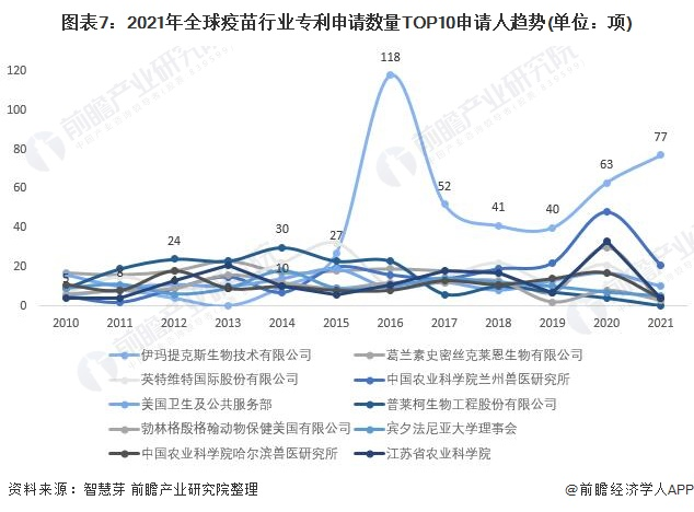 全球疫苗行業(yè)專利申請(qǐng)數(shù)量TOP10申請(qǐng)人分別是伊瑪提克斯生物技術(shù){}、葛蘭素史密絲克萊恩生物{}、英特維特國(guó)際股份{}、中國(guó)農(nóng)業(yè)科學(xué)院蘭州獸醫(yī)研究所、美國(guó)衛(wèi)生及公共服務(wù)部、普萊柯生物工程股份{}、勃林格殷格翰動(dòng)物保健美國(guó){}、賓夕法尼亞大學(xué)理事會(huì)、中國(guó)農(nóng)業(yè)科學(xué)院哈爾濱獸醫(yī)研究所、江蘇省農(nóng)業(yè)科學(xué)院。